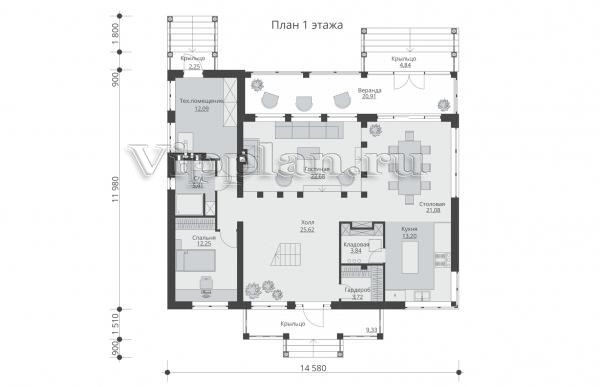 | Размеры дома: | 14.58м×11.98м |